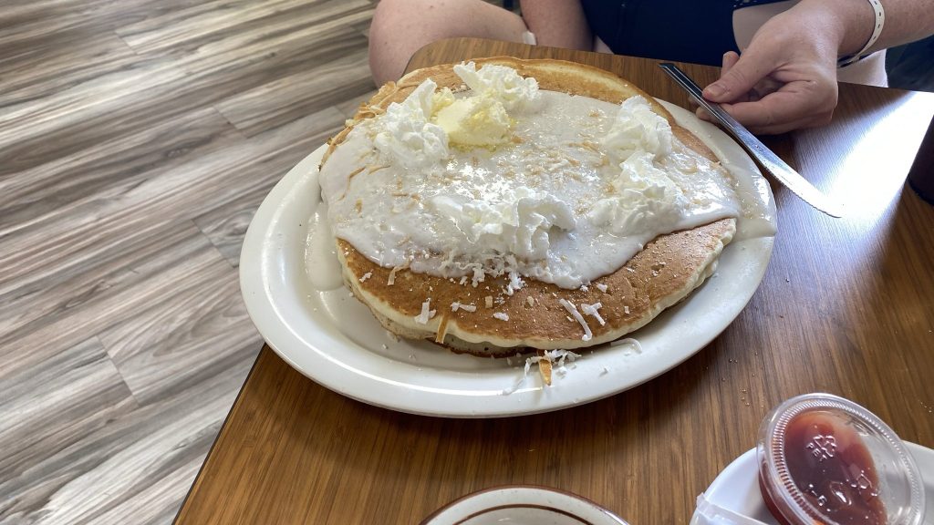 Thanks to the 6-hour time difference from home, we were up early again and caught up on a bit of work. For breakfast, we drove to the Hawaiian Style Café in Waimea (recommended by my friend Ben). It was fantastic. The coconut pancakes and the omelet were excellent.