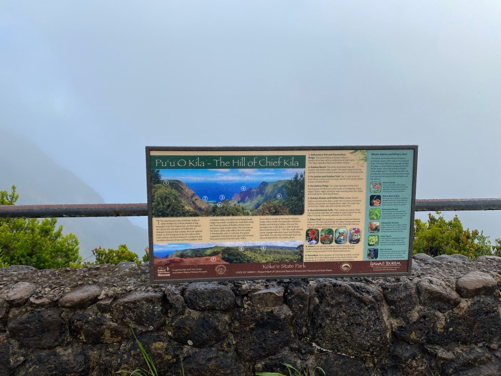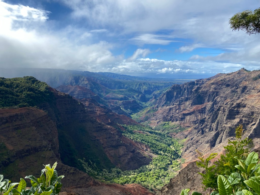 I headed out after breakfast in the lounge (yes, 6:30am again) and drove over to Waimea Canyon Drive. There was a lot of cloud cover on the way up and I wasn’t too hopeful, but when I reached the Pu’u O Kila Lookout at the end of the road, the clouds momentarily cleared enough to get some great pictures down to the ocean where I had been two days before.