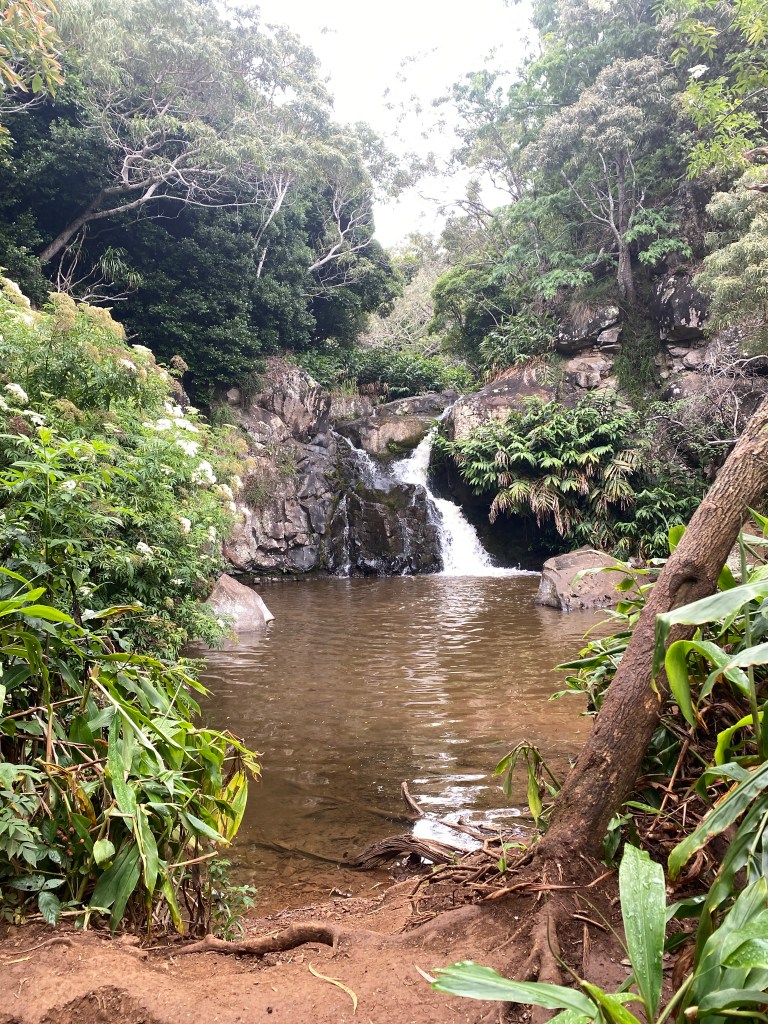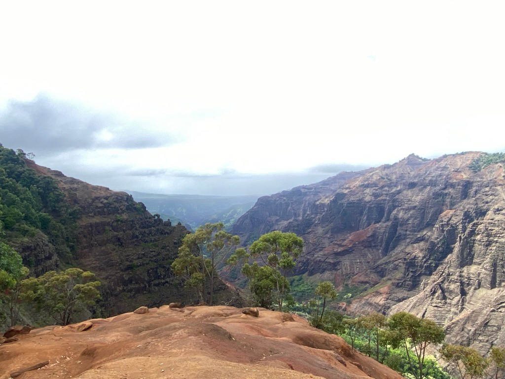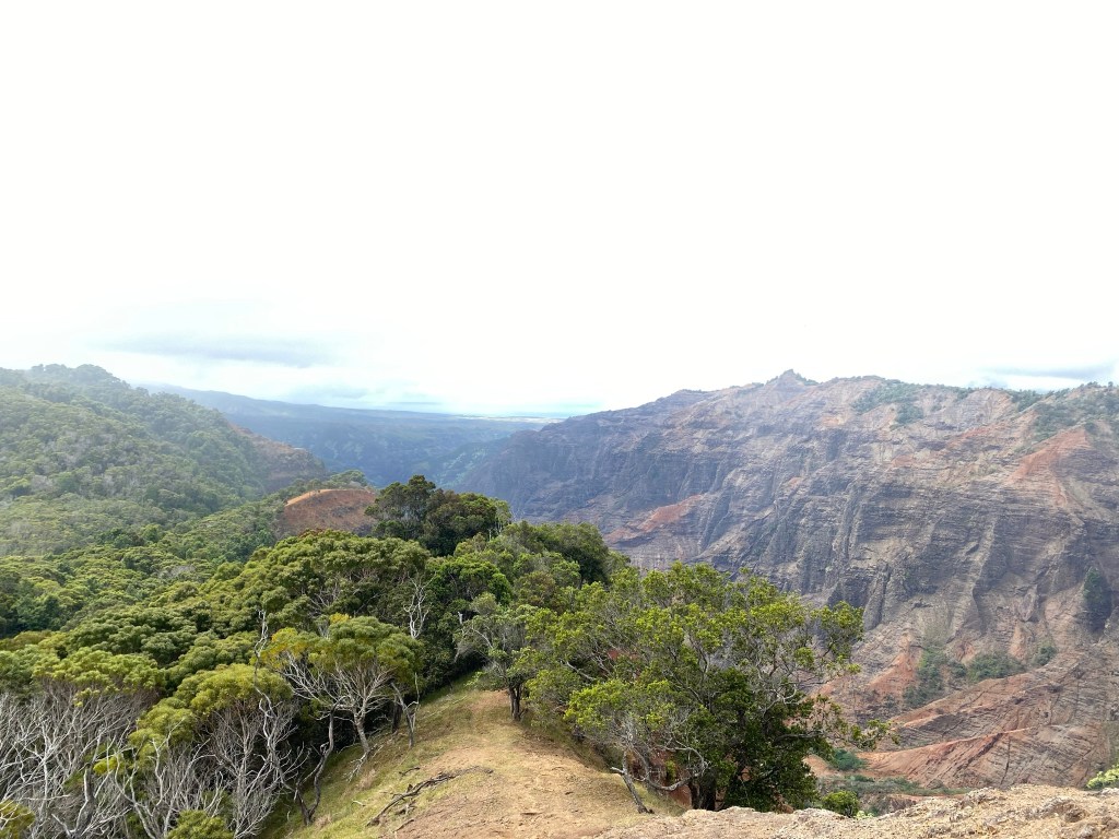 I drove down a bit further and parked at the Waimea Canyon trailhead. It was raining part of the way, so things got a bit slippery and muddy. I had brought a pair of old sneakers that I planned to just throw out if they got too muddy. I was glad that my wife had stayed back as this hike would have been a bit too strenuous for her. It ended at a bit of a disappointing waterfall but was a fun way to spend a couple of hours.