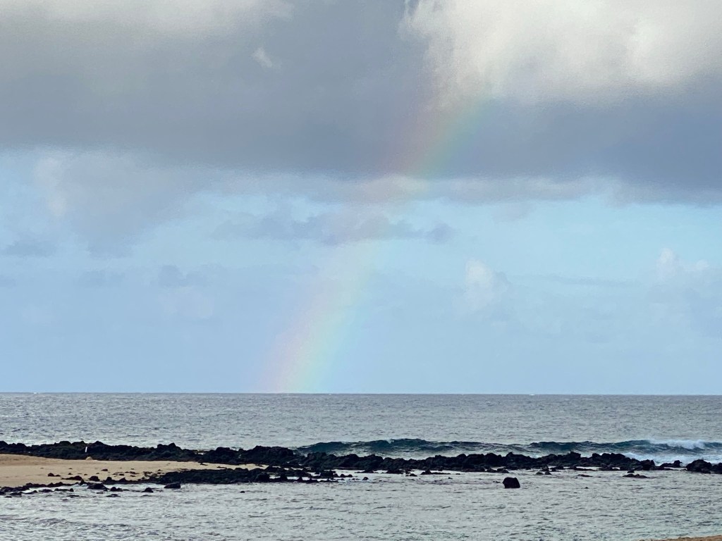 We drove the short distance to Poipu Beach and had no issues parking at 8am. The beach had a protective reef a few hundred yards from shore, so it was better for swimming. The reef formed a small island with tidepools, so I swam over, explored the tide pools and watched the big waves crash on the reef.