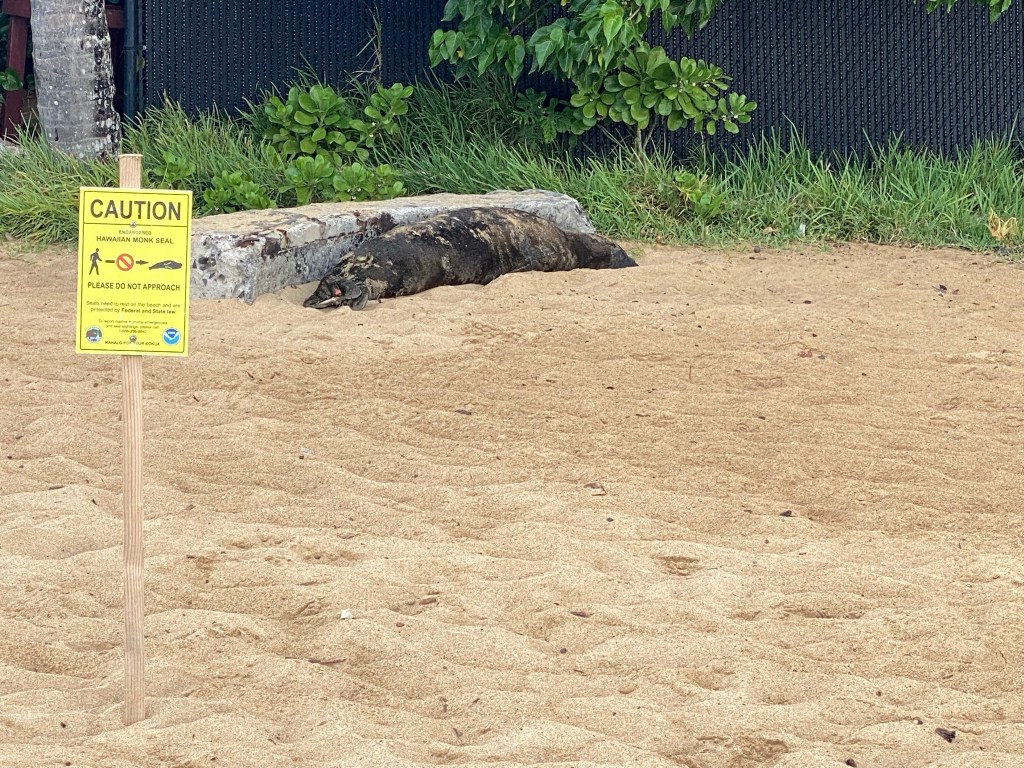 After an hour or so, my wife wasn’t having any luck with shells, although we did see another sleeping monk seal right on the beach.