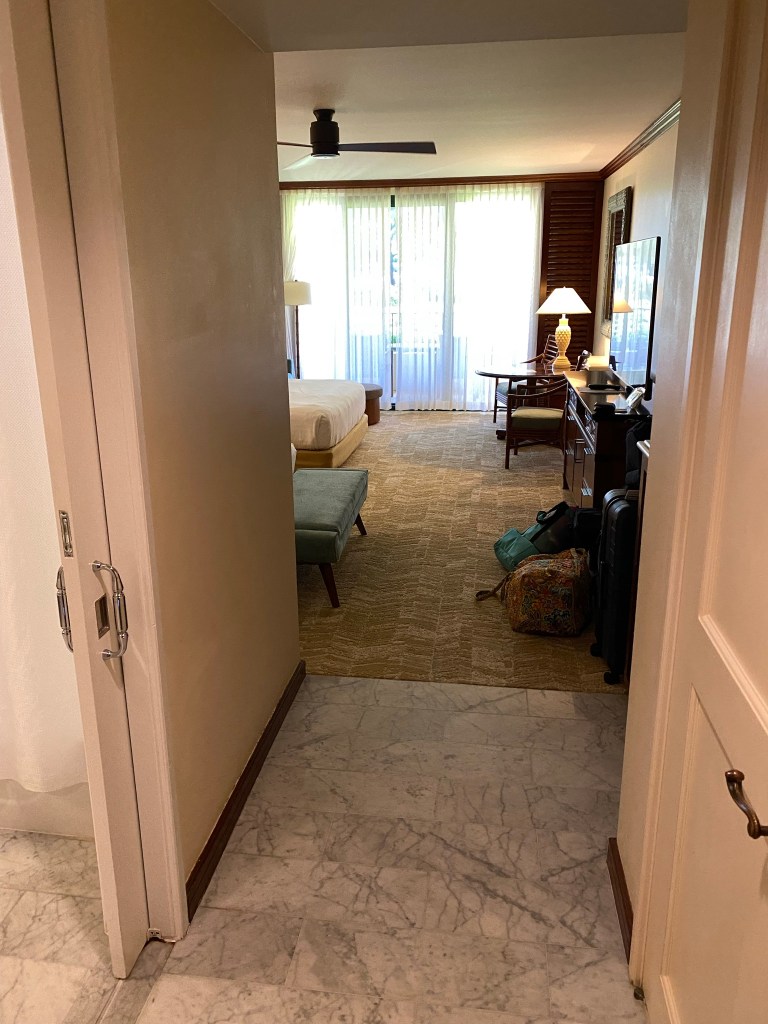 We called the front desk after we had breakfast (yes, at 6:30am) and told them we were headed over to Poipu Beach for a couple of hours so they could go ahead and move our things. They told us to check back when we returned, and we could get our new wristband for the day room.