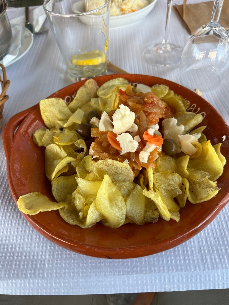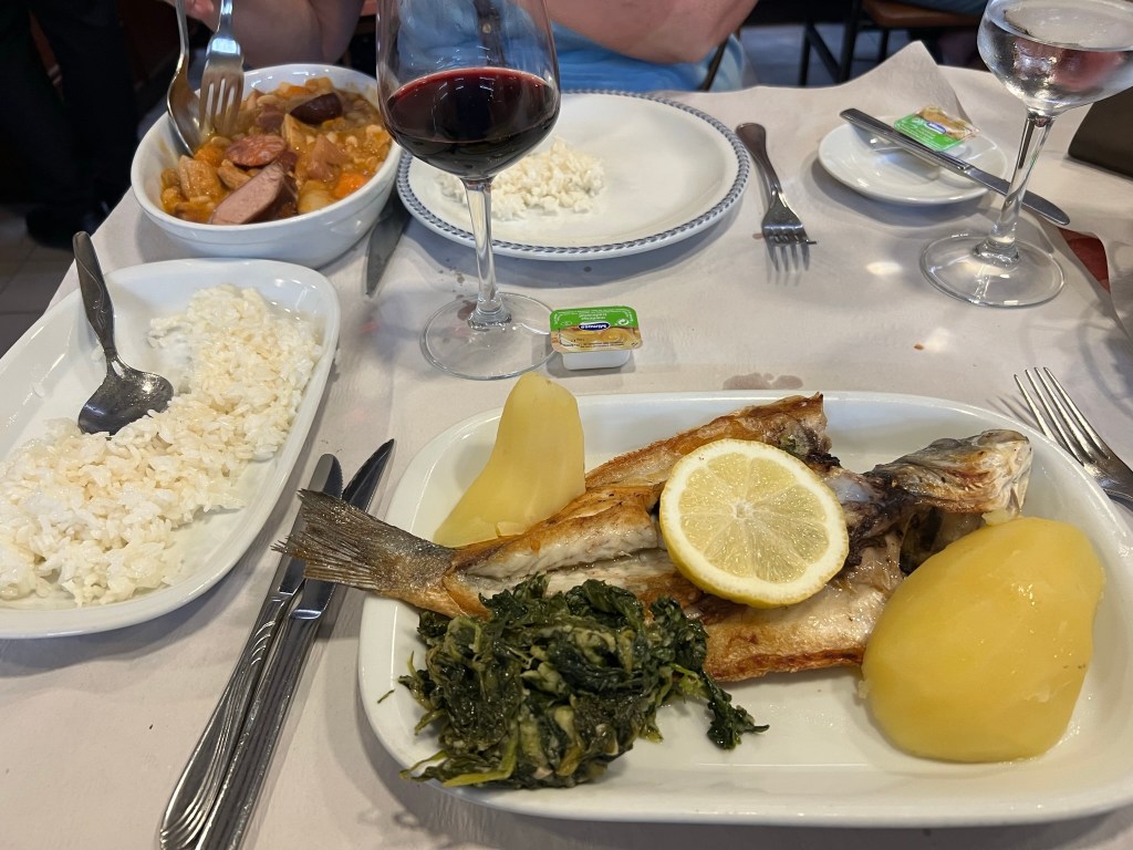 For lunch we had, you guessed it, tripe (her) and cod (me) along with sangria (her) and port/tonic (me). This cod was made a different way and really tasty.