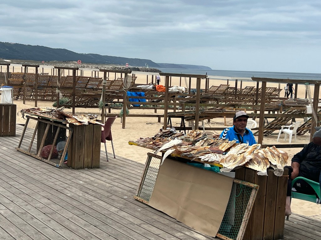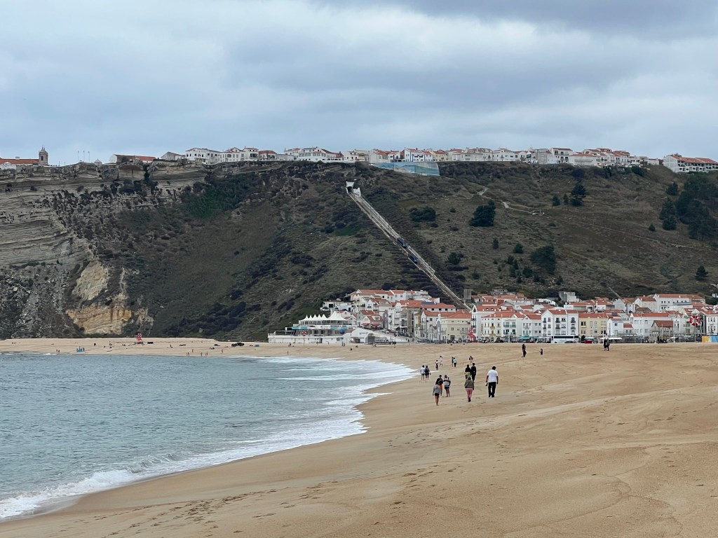 We drove about two hours and stopped at Nazare on the coast. You may be familiar with Nazare from the documentary ‘100 Foot Wave.’ A few months a year it gets these crazy huge waves just offshore and attracts the world’s best daredevil surfers and thousands of onlookers. Unfortunately, in late May, there are no huge waves.