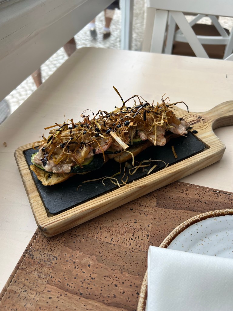 My wife found a well-reviewed tapas restaurant just outside the city walls, so we walked down and had lunch. It was probably our best lunch of the trip: fried squid, fried runner beans and pork cheeks. She also said the sangria was excellent. I was driving that day so none for me.