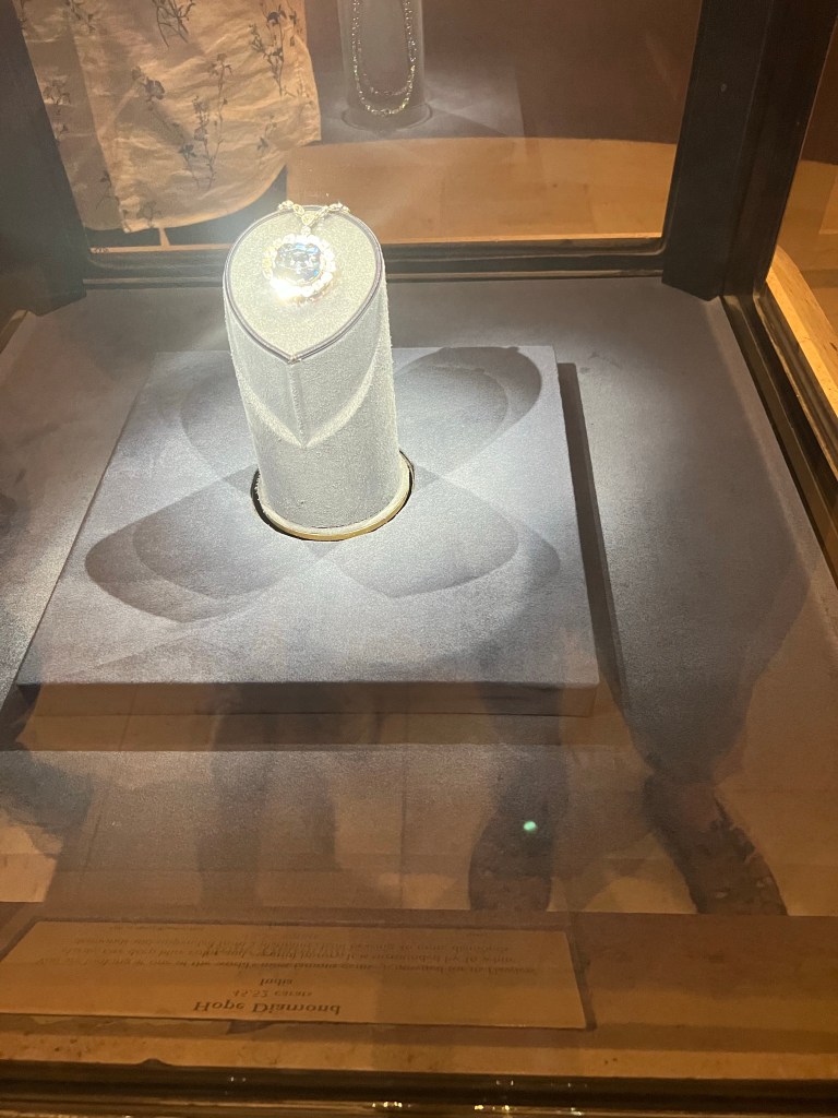 We went up to the top floor and worked our way down, making sure to stop by the Hope Diamond and a few other important exhibits. We were done in about 45 minutes and walked out the rear entrance by the National Mall. We walked down to the American History Museum and there was no wait to go inside.