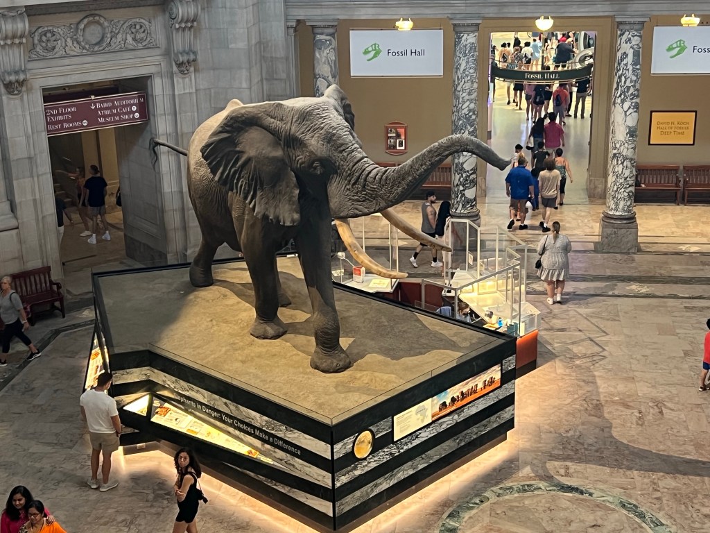 We decided to head down to the Smithsonian area a bit early and stop into a couple of other museums first. We took an Uber from the Park Hyatt to the Natural History Museum and arrived around 9:50am. There was a fairly short line outside waiting for the 10am opening. Lucky for us, our spot in line was in the shade. At 10am on the dot, the doors opened and the line moved through the security screening fairly quickly. Bags have to be searched, but wallets and phones can just go through the machine in a small bin.