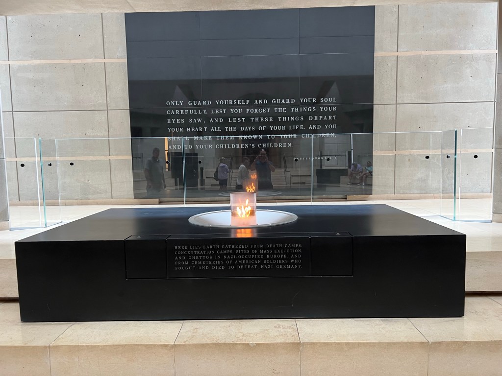 We arrived a bit early at the museum, but we were allowed in at 11:15am. If you’ve never been to the Holocaust Museum, it’s a self-guided trip through the rise of Hitler, the anti-Jewish laws, then the camps, then finally the liberation. There’s a big dose of “why didn’t the Allies do more to end the Holocaust?” as well. I tend not to take pictures at all when here as it’s both too interesting and too heart-breaking, so I forget.