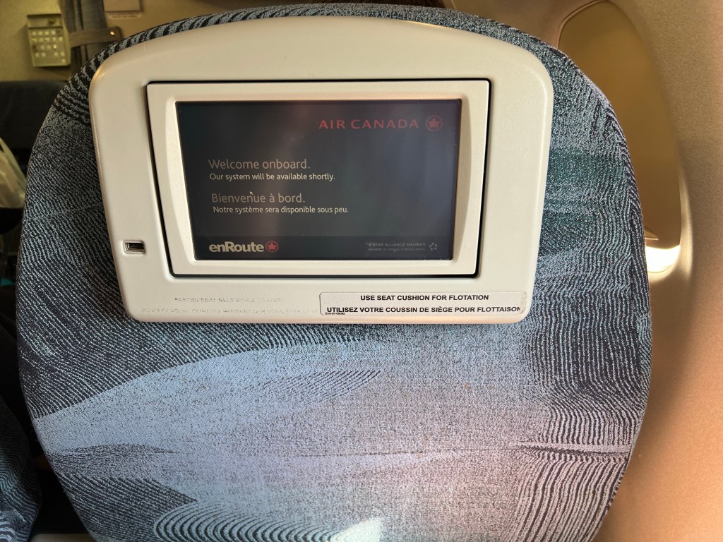 My wife and I flew to Montreal from Newark and flew back to Atlanta, both on Air Canada. Our flight to Montreal was in business class as I booked this flight a bit late when I realized we had to be in New Jersey to drop off our younger daughter at college on the Friday morning. In the end, it was 25k Aeroplan points per person for business class and 20k per person for economy so it made sense to just book business class.