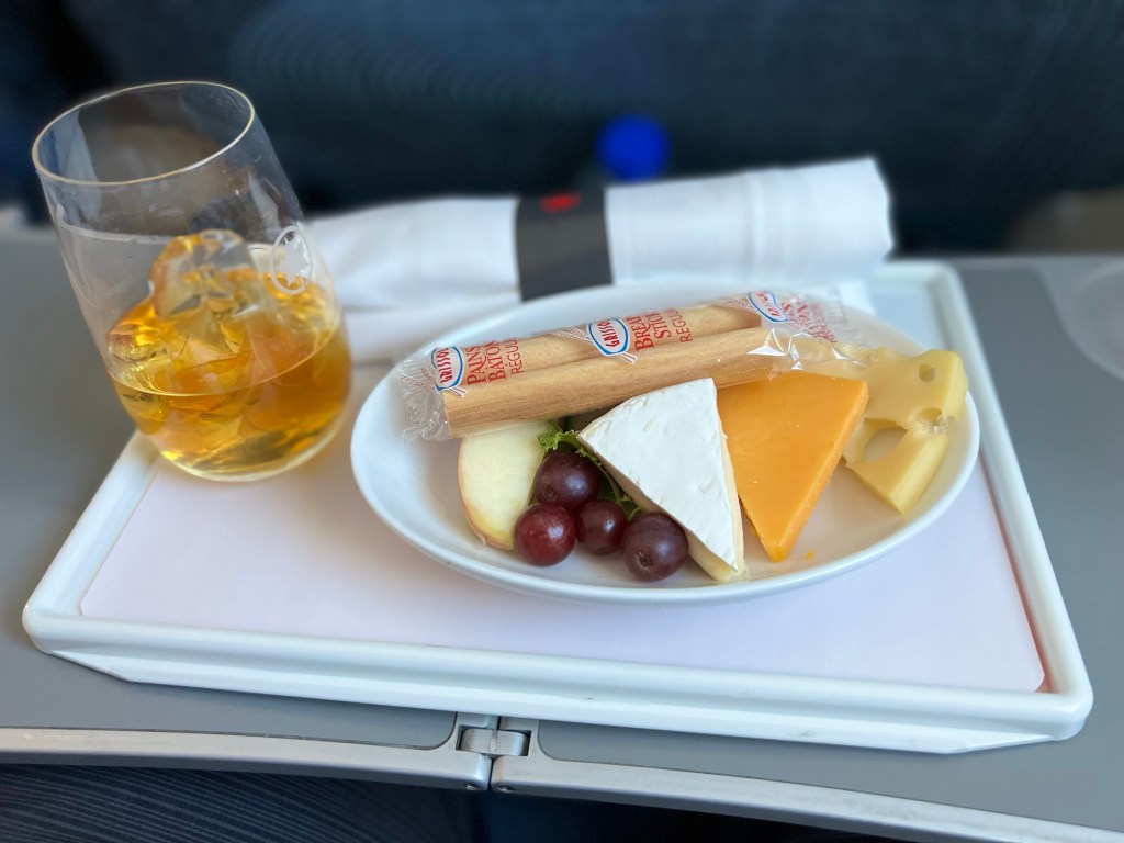 We were served a fruit and cheese plate along with choice of beverage. My wife had wine and I had whiskey.