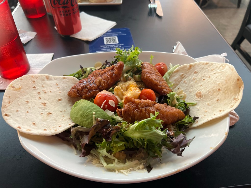 The food wasn’t too bad at the restaurant. I ordered a salad and my wife ordered a burger. They warned us on entry that the kitchen was taking about 30 minutes, but thanks to our delay, we had the time.