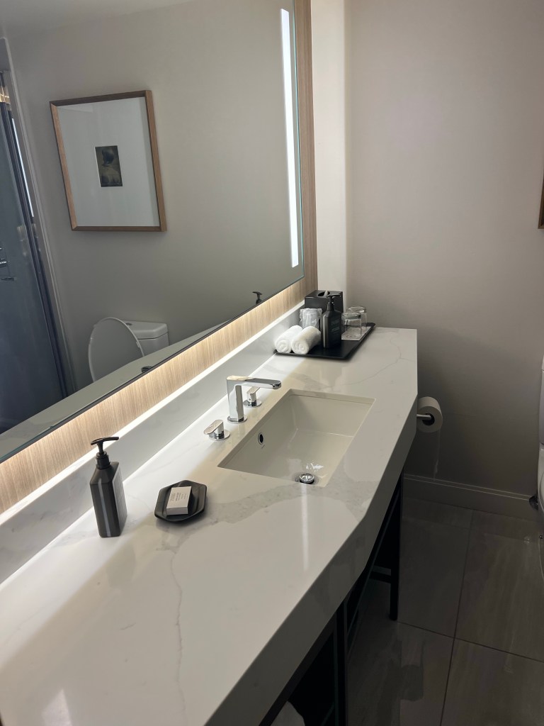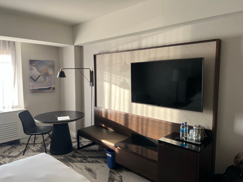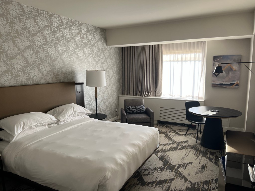 When we arrived at the hotel around 6:30pm, our suite wasn’t ready yet. That seemed kind of ridiculous at that hour, but we were more concerned with getting into our room and cleaning up after a long day of college move-in, airports and flying, so we took the downgrade to a king club room that was ready and checked in. Our daughter and her friend were in a 2 queen room down the hall, also with club access (which is not guaranteed on a second room, but I asked nicely).