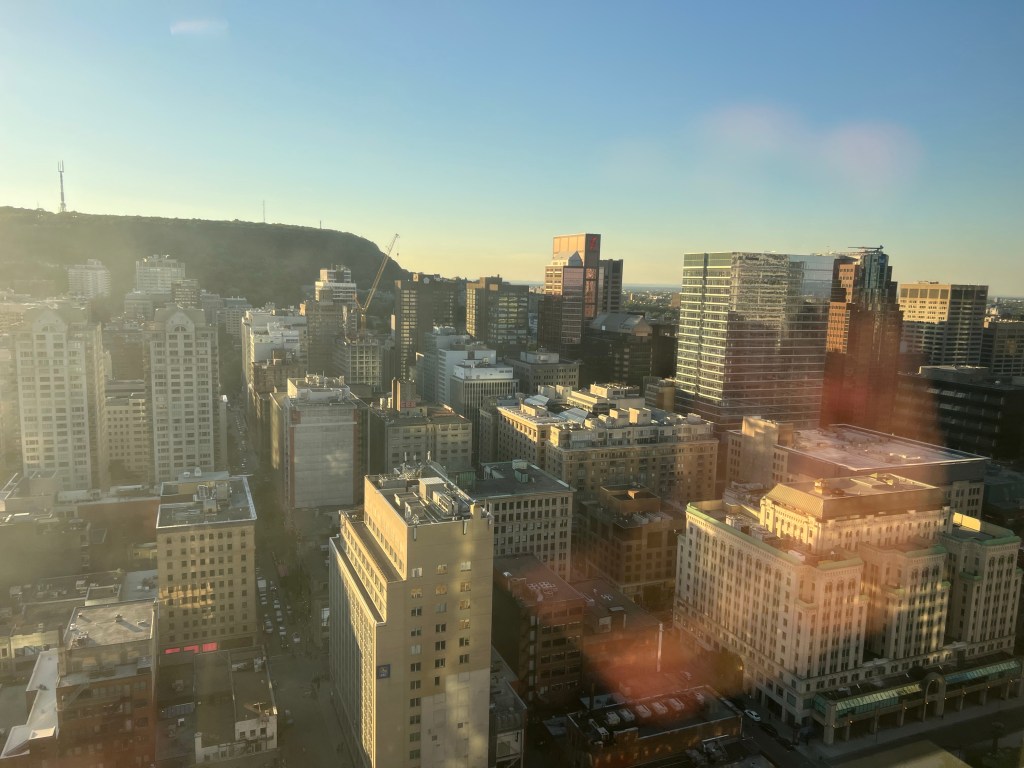 Our room was nicely appointed and had a great view of Mont Royal behind downtown. I could also see the Olympic stadium if I craned my neck a bit.