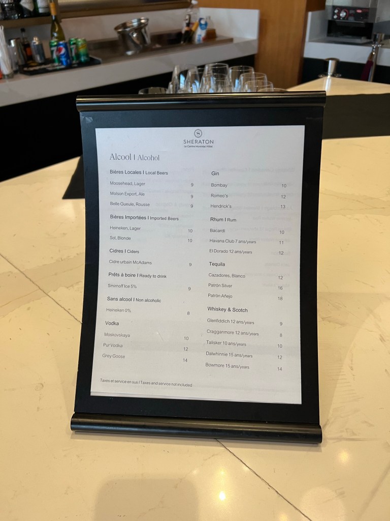 Parking at the hotel was a reasonable CAD$25 per night. We left the car there when my daughter arrived on Friday night and didn’t retrieve it until we headed to Quebec City Sunday morning. Although it’s a busy convention hotel and the club can get crowded, I recommend this hotel for the good location, reasonable prices over a holiday weekend and good lounge food relative to most North American Marriott properties.