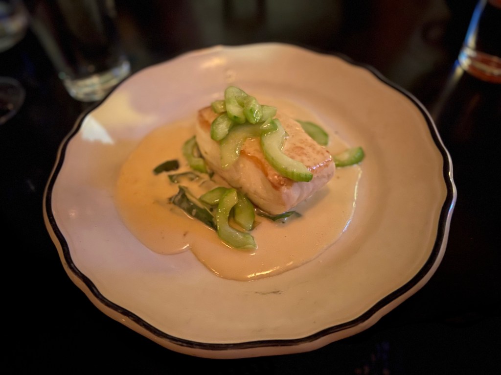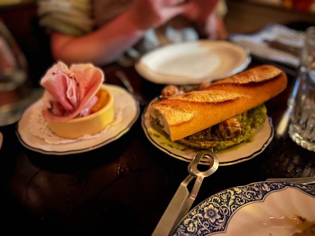We started with cocktails and then tried to make sense of the menu, which was only in French. Our bilingual waiter was helpful and basically listed everything on the menu. The food was hit and miss. The appetizers (scallop, snails, and ham/melon) were good. I enjoyed my halibut, but my wife didn’t love her lamb dish. We all enjoyed the desserts.
