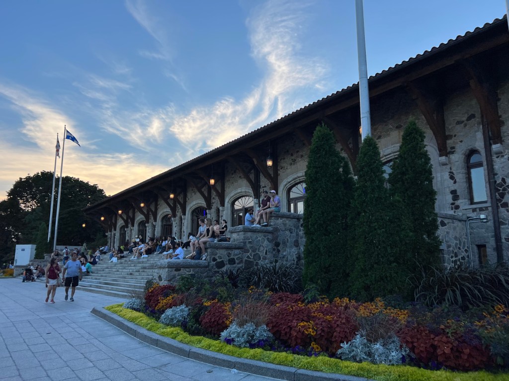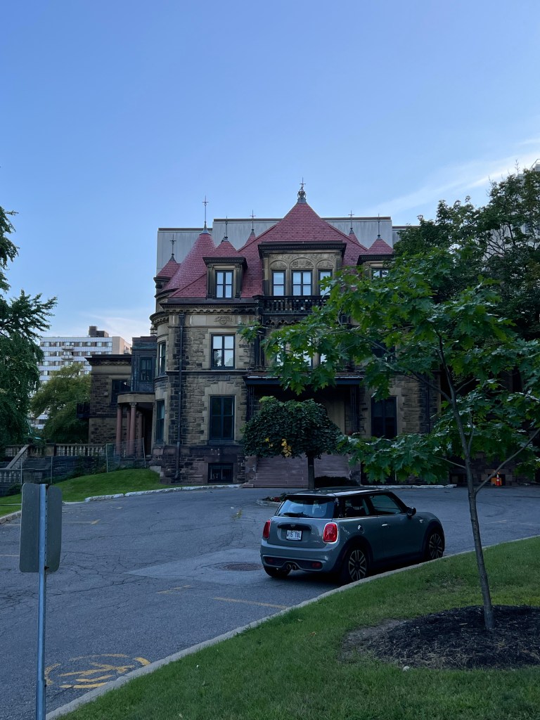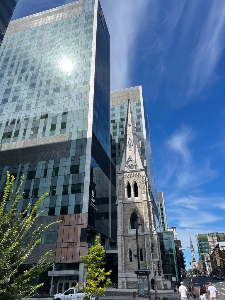 In the late afternoon, I walked up from the hotel to Mont-Royal. There are about 400 steps up to the chalet where you can look out over the skyline. Before you even reach the steps, it’s a steep walk up through part of the McGill University campus.