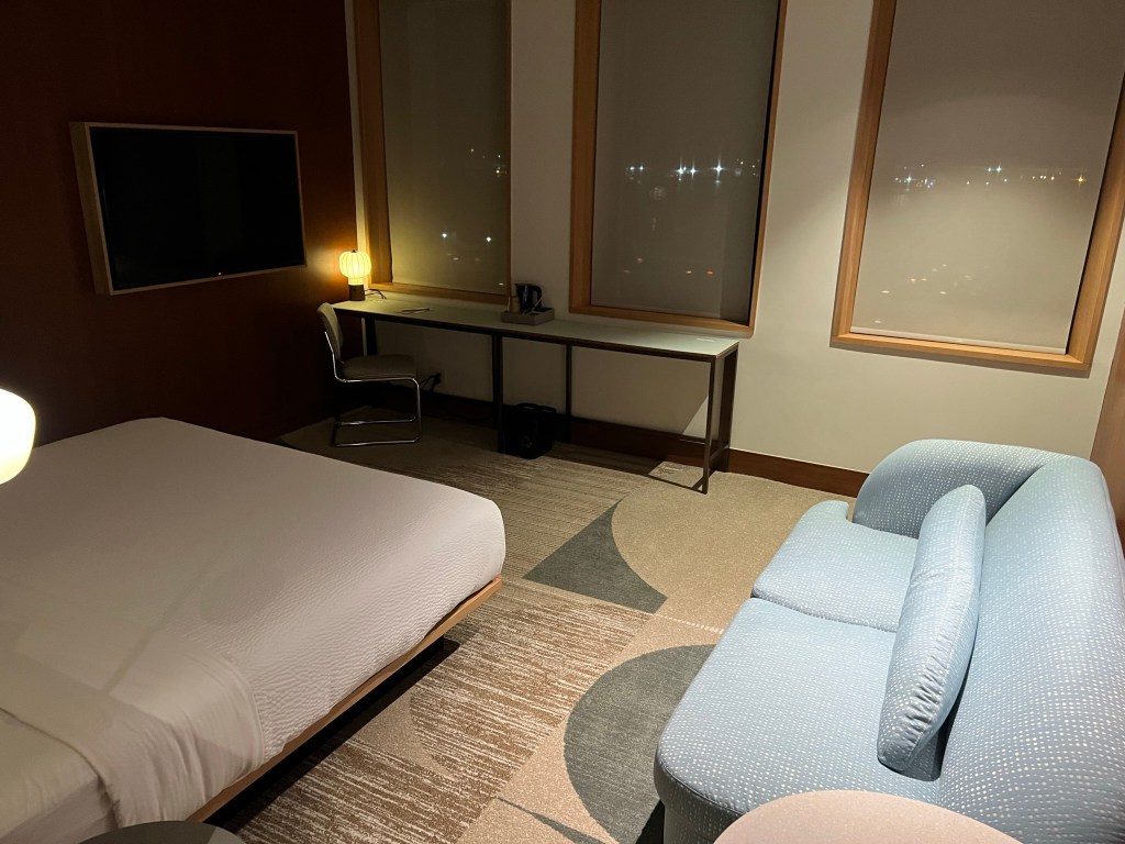 I apologize for the dark pictures, but I was still trying to figure out the lights. There’s a LED control panel as you enter the room that controls everything. I was eventually able to figure it out fairly quickly. It controlled the lights, blinds, and temperature in the room, but there were also switches by the bed that controlled the lights and blinds.