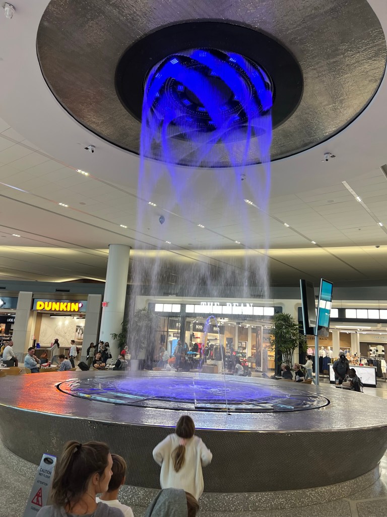The new terminal itself was very impressive with sweeping views of the river and lots of natural light. There is also an internal fountain in the center of the main terminal area that spells out messages and patterns.