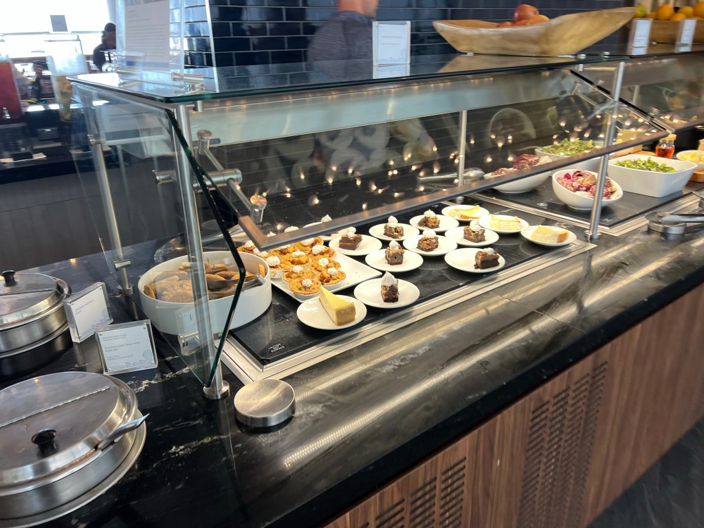 The food selection was much better than what I saw at LGA the previous day. There was a couple of hot food protein options, a tasty soup and a great dessert selection. There was also no wait at the bar.