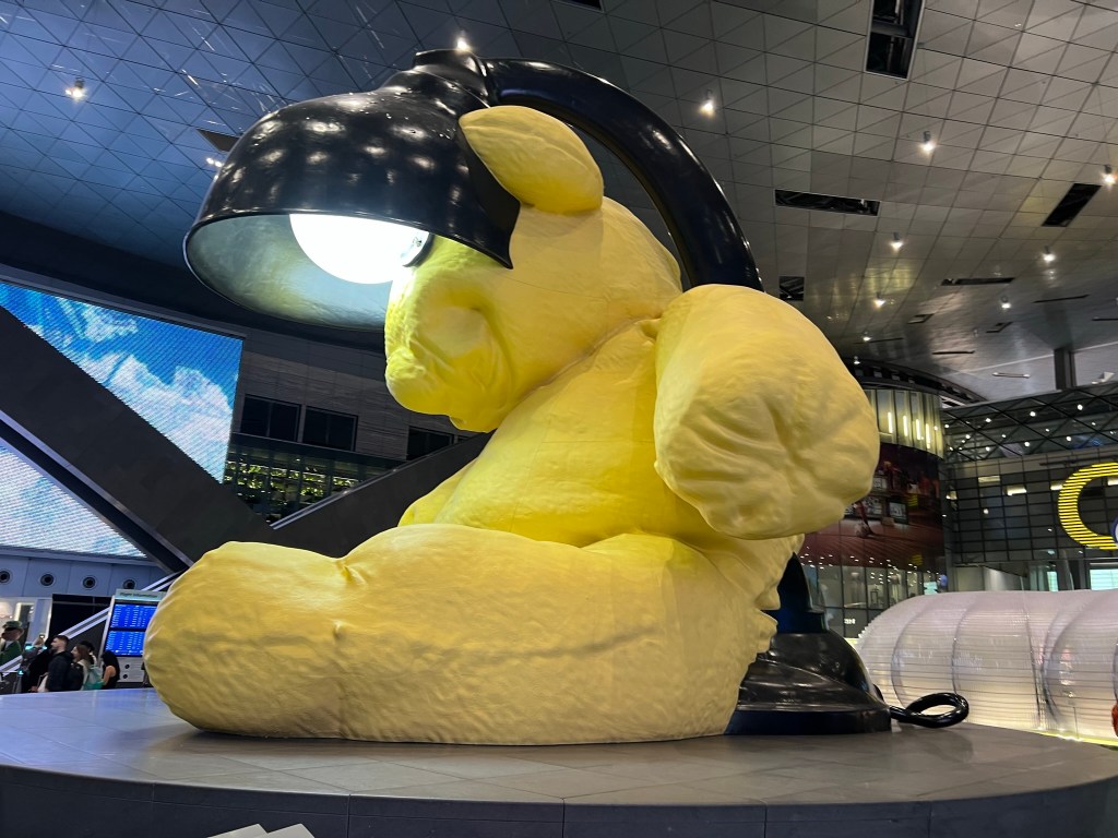 I took the obligatory pictures of the teddy bear, which my family thought was kind of silly. Then we followed the signs to the Al-Mourjan lounge which were fairly easy to spot.