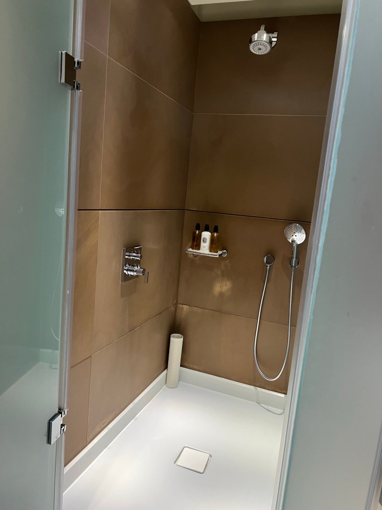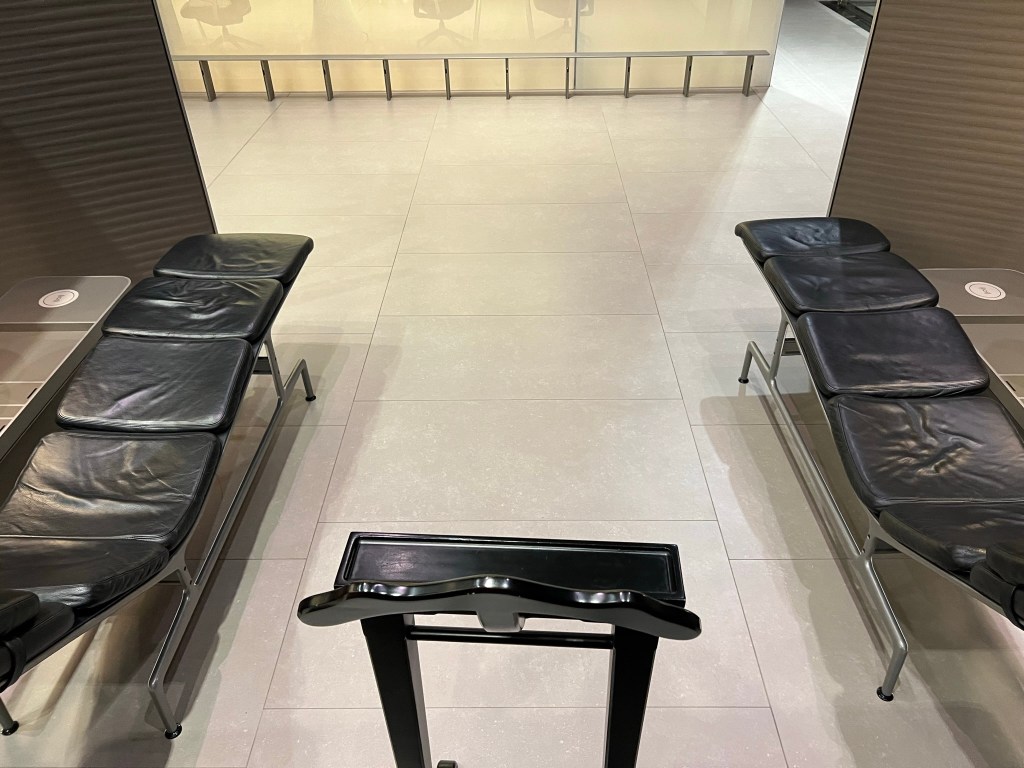 We were directed to the business center and behind the business area there were loungers. We grabbed four and basically decided we would camp there for our layover. If anyone wanted to eat, shower, etc. we would go in smaller groups so we wouldn’t lose our spot. There were charging ports at all the loungers.