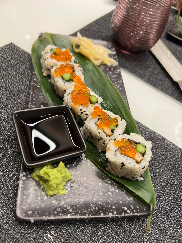 We took turns going to the restaurant to eat and the sushi was surprisingly good.