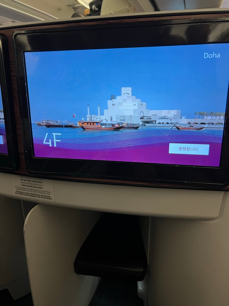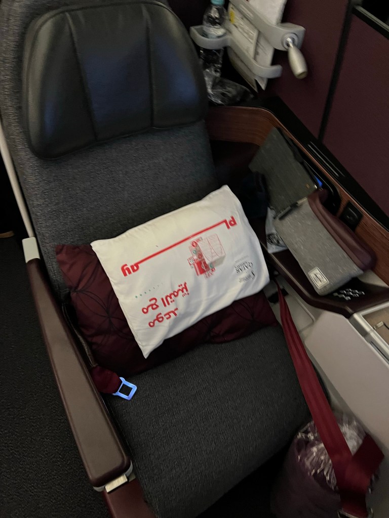 Unlike in Chicago, boarding was pretty much on time in Doha. The gates are set up to check passports and boarding passes before entering the gate areas. Then you can board fairly quickly when the time comes. It was still a bit chaotic as they had all of the priority boarding group sitting in one area of the gate and there was no PA announcement, just a guy who yelled “business class!”