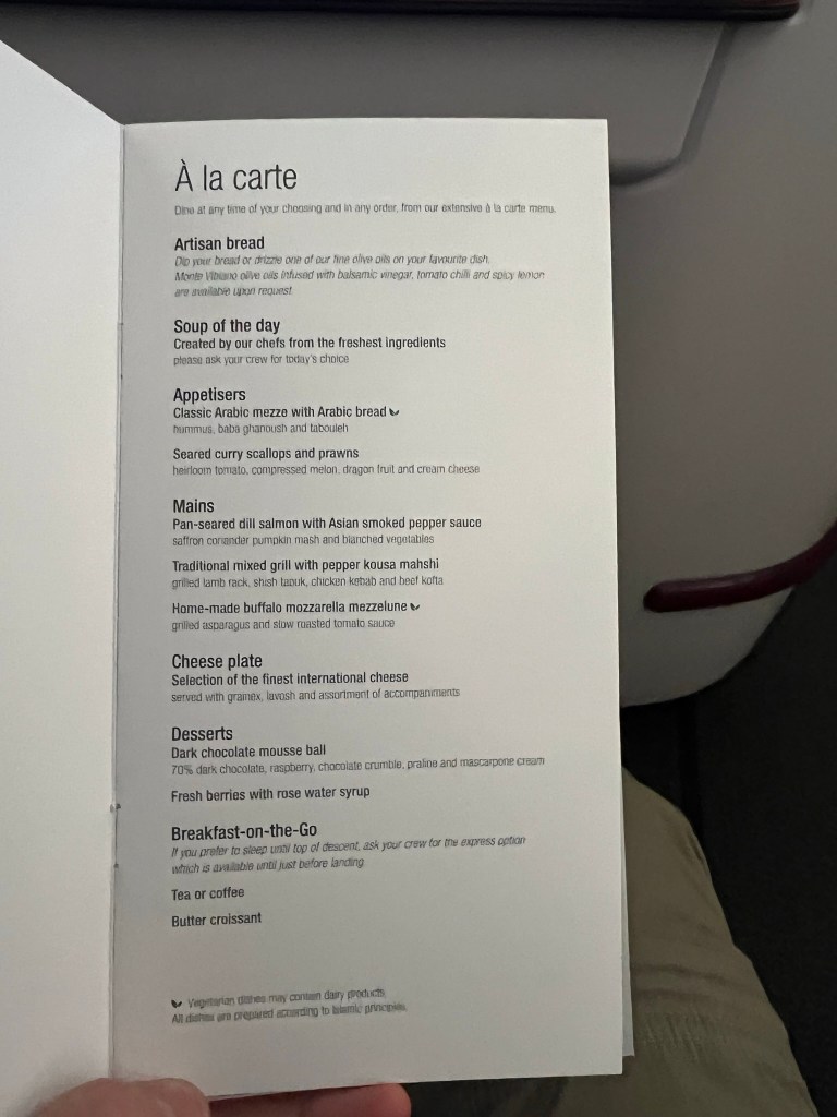 I napped on and off for a couple of hours but couldn’t really get comfortable. It’s not surprising that the seats were much narrower than QSuites. I also noticed that the middle pair had even less space for the footwell compared to the seats on the side.