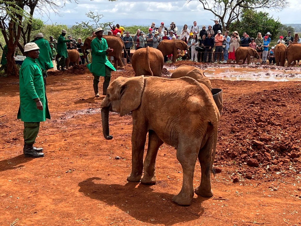 We were then driven to the elephant orphanage in the Karen neighborhood (named for Karen Blixen, the famous Out of Africa naturalist). I had pre-reserved tickets as they only release about 100 spots per day for the 11-12 elephant feeding time. I paid cash in Kenyan shillings for the entrance fee. It was either $60 or 60,000 shillings for the four of us. Note that 60,000 shillings are equivalent to approximately $48, so it’s definitely cheaper to pay with shillings if you can get some before you go.