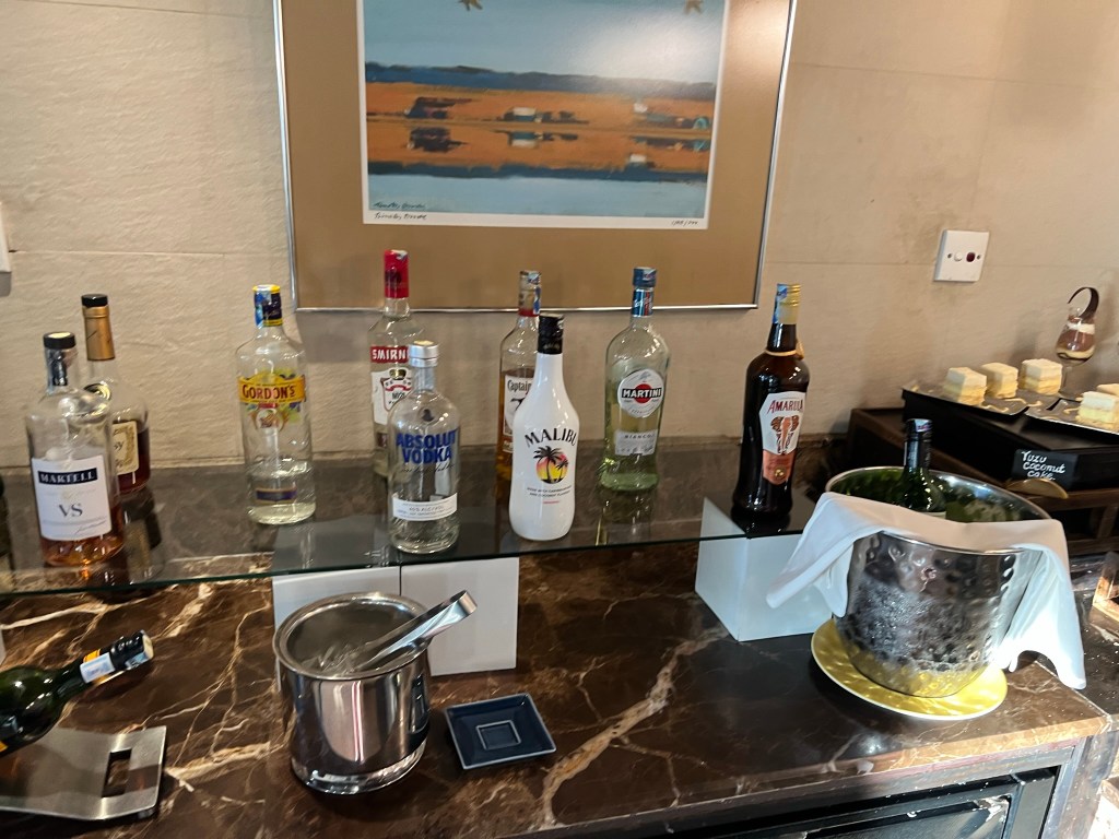 I woke up around 5pm and my younger daughter was also awake so we headed to the lounge where afternoon appetizers were being served along with an open self-pour bar (no extra charge). We had some tasty hot food and I had a couple of whiskeys which I assumed would help me sleep off the jetlag that night. Here are some lounge pictures.