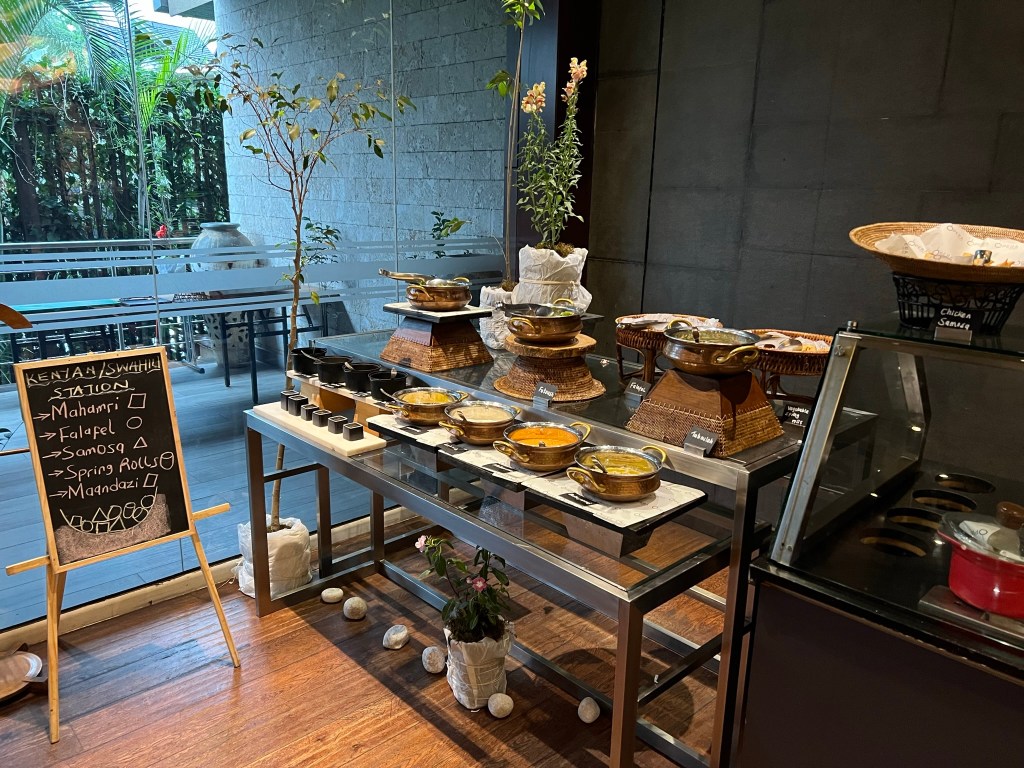 The next morning, we went to breakfast together. It was included for my wife and I thanks to my status and was $30pp for my kids. It was well worth it to pay for them. There were the usual eggs made to order and hot/cold buffet items, plus Indian, Kenyan and other delicacies. Coffees and other drinks were made to order and brought to the table. It was one of the most extensive hotel breakfast buffets we’ve seen anywhere in the world.