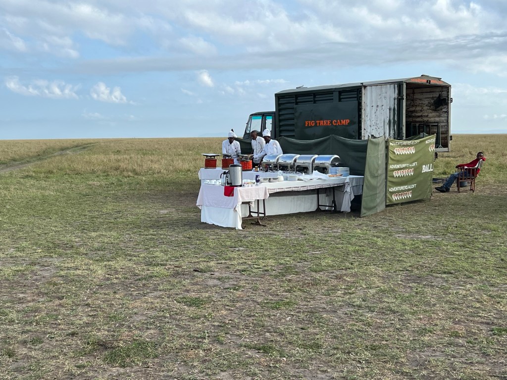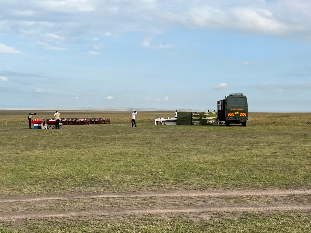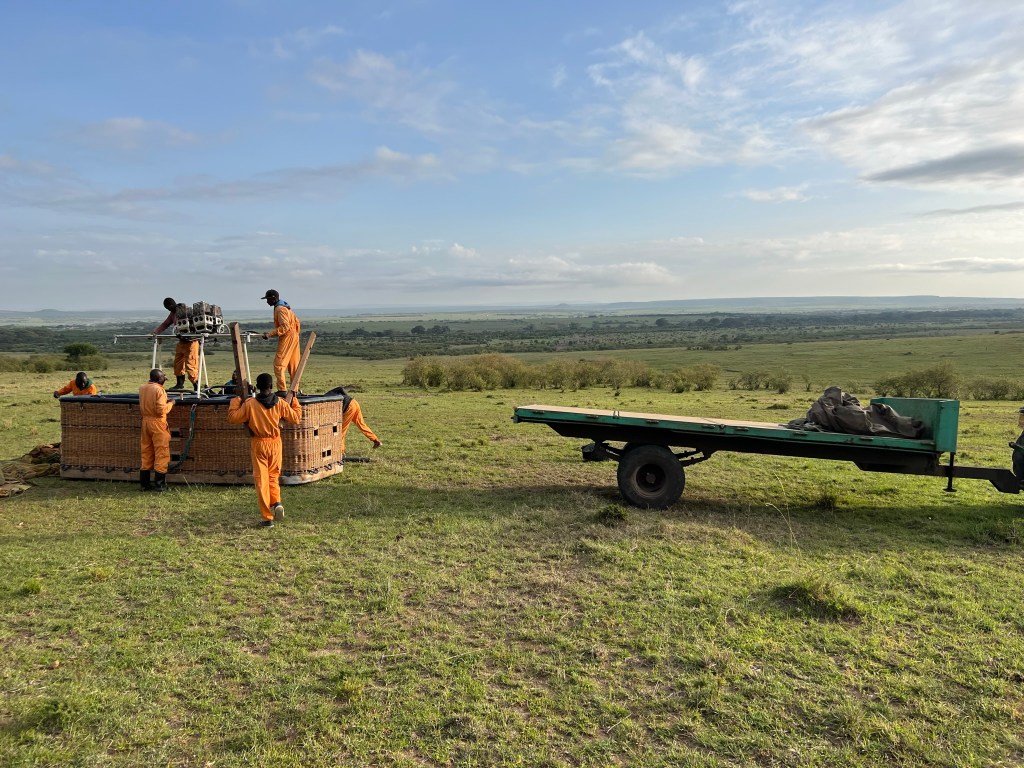 We landed inside Masai Mara reserve and were met by a truck (to transport the balloon back to camp) and several vehicles to drive us to breakfast.
