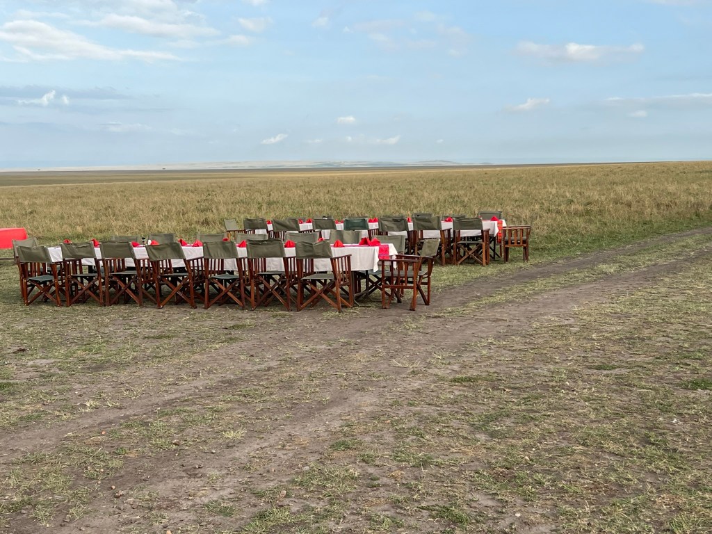 Breakfast was in a large field within the reserve. There was a full hot and cold buffet, coffee, tea and a bar with bloody mary, mimosa, and gin and tonic available. We enjoyed a relaxing breakfast and chatted with some of our fellow riders and the pilot, who had retired to Luxembourg, but was back visiting Kenya for a few months and picking up some balloon driving shifts while he was there.