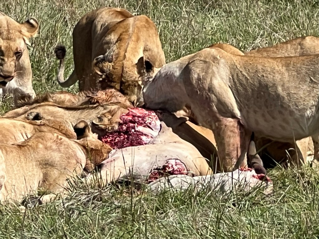 We pretty much drove straight out of the park, but we made a quick detour to see some lions with a freshly killed giant antelope.