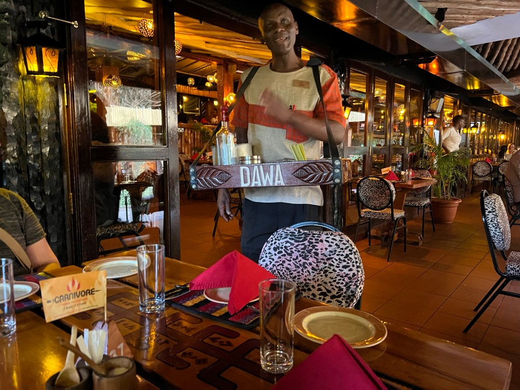 Around 6pm, we made it to Carnivore, a world-famous churrascaria restaurant in the Nairobi suburbs. Imraan had graciously paid for our dinner there as a birthday present to me and we also invited Kehara to join us.