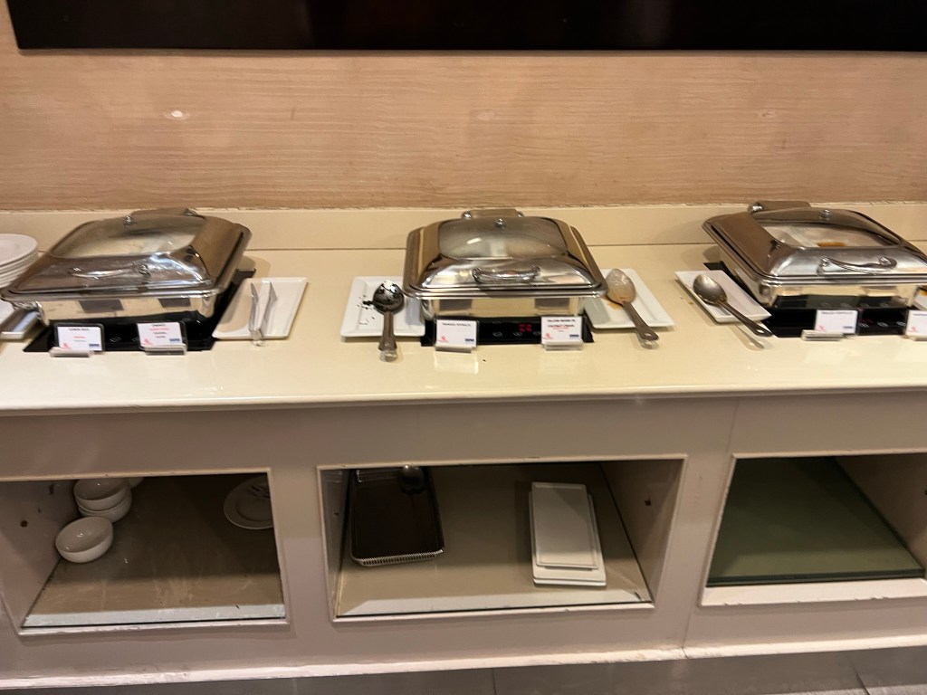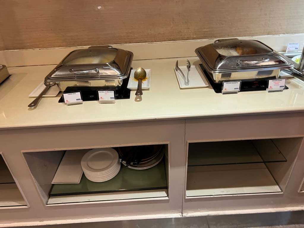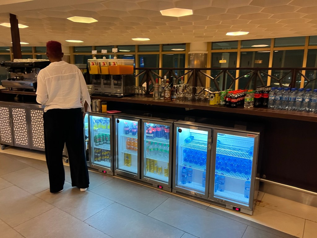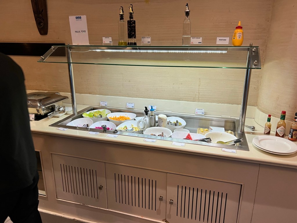 We found the Kenya Airways Pride Lounge fairly easily and waited there until it was time to board. Nobody was hungry, but I did get some pictures of the food and drink selection. There was a hot and cold buffet and a halal section too.