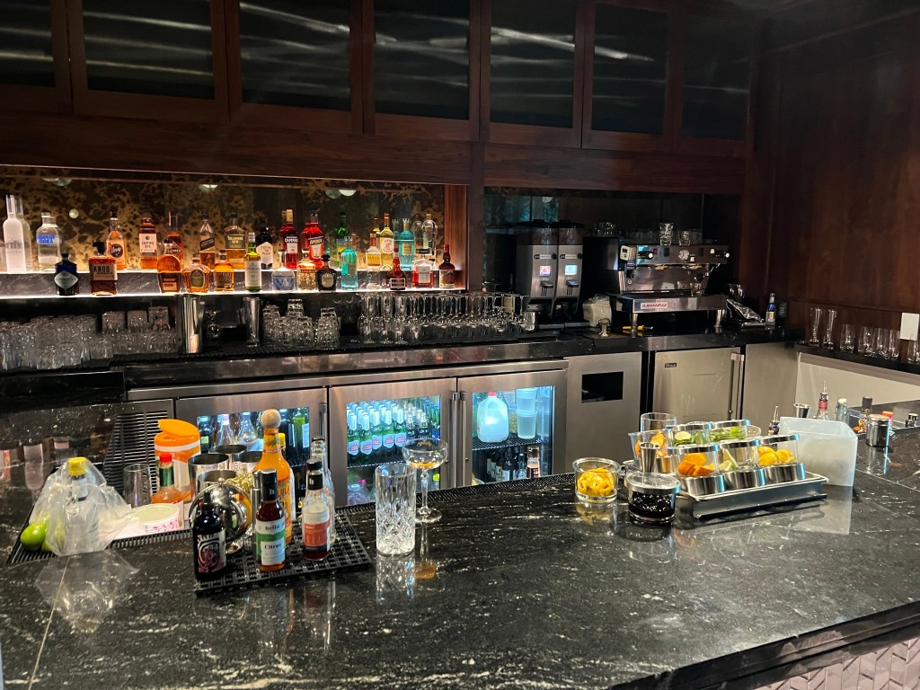 The JFK Centurion Lounge is not far from the security exit on the same level. It was about nine minutes before the three-hour window where we were technically allowed to enter, but the nice agent didn’t even mention it and let us right in. We made a beeline for the speakeasy which is on the lower level of the split-level club.