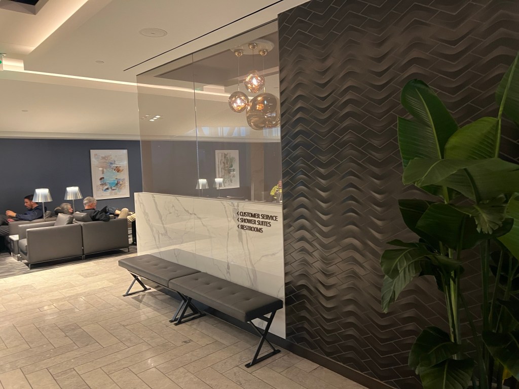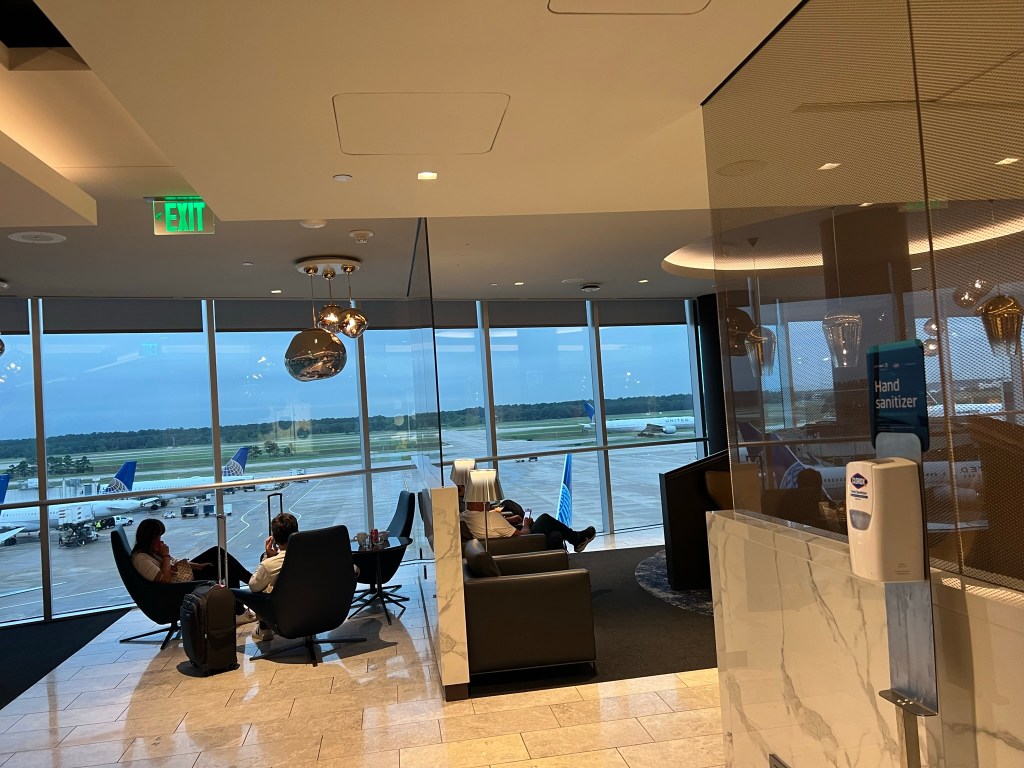 This was our first time visiting a United Polaris Lounge. They are located in Newark, Washington Dulles, Chicago O’Hare, Houston, Los Angeles and San Francisco. You can access this lounge on arrival, departure or connection if flying United Polaris business class or on departure only if flying in a non-United Star Alliance business or first class cabin. Our Singapore Airlines business class ticket allowed us to access the lounge which is in Terminal E in Houston (connected airside via walkway to Terminal D where Singapore Airlines departs).