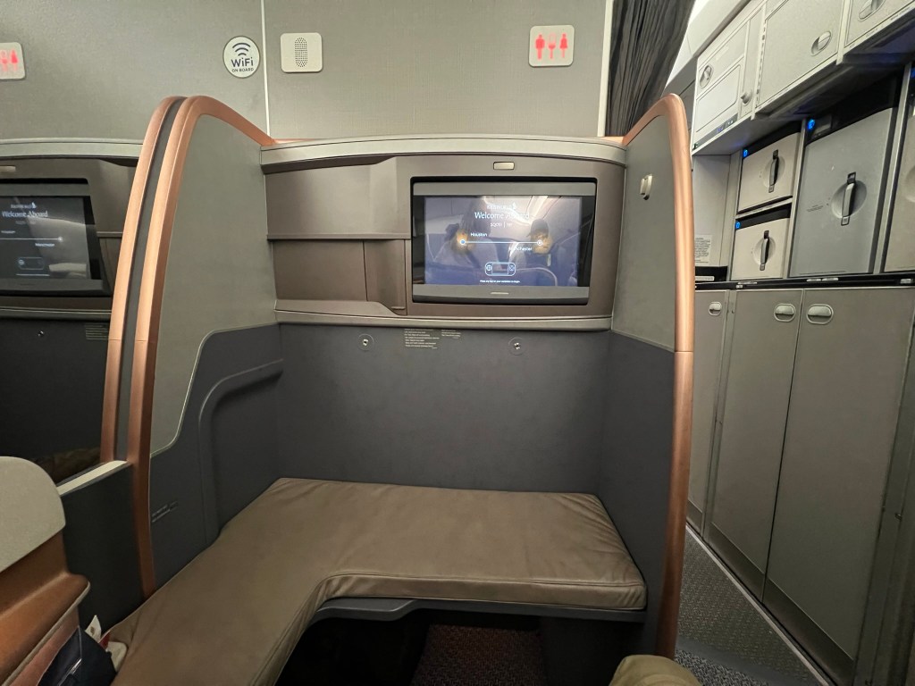As you can see, there is a huge footrest with no height or width restrictions. The non-bulkhead seats have a weird side footwell that makes people contort themselves to lay flat.