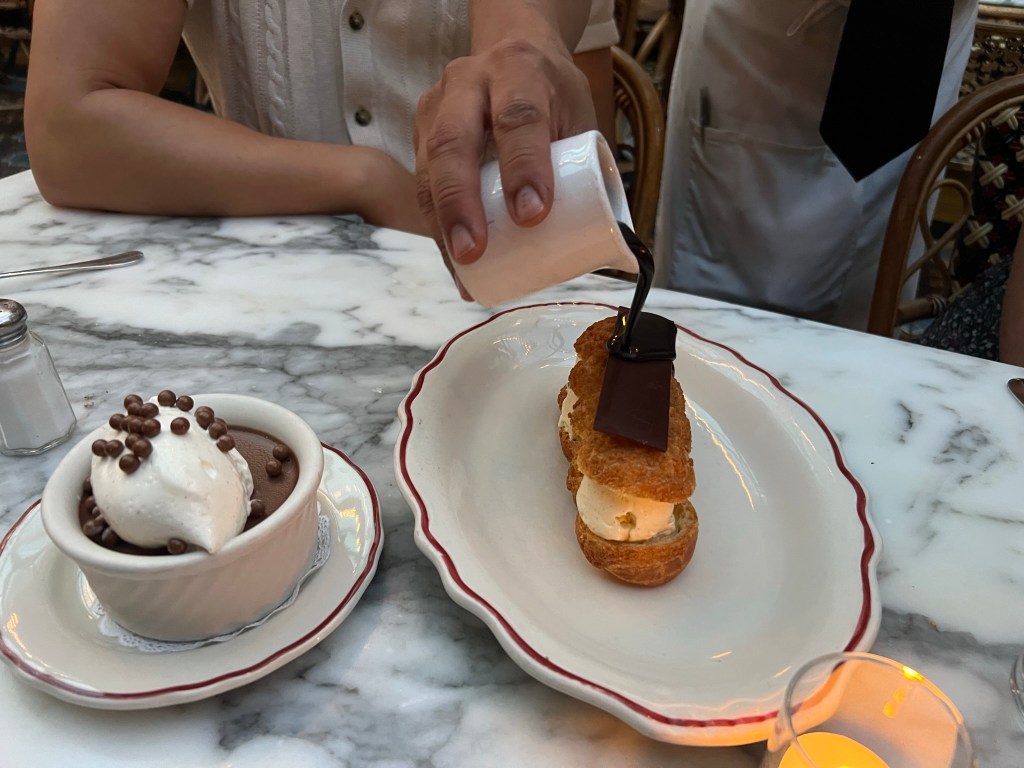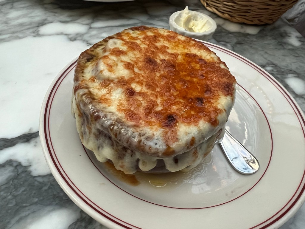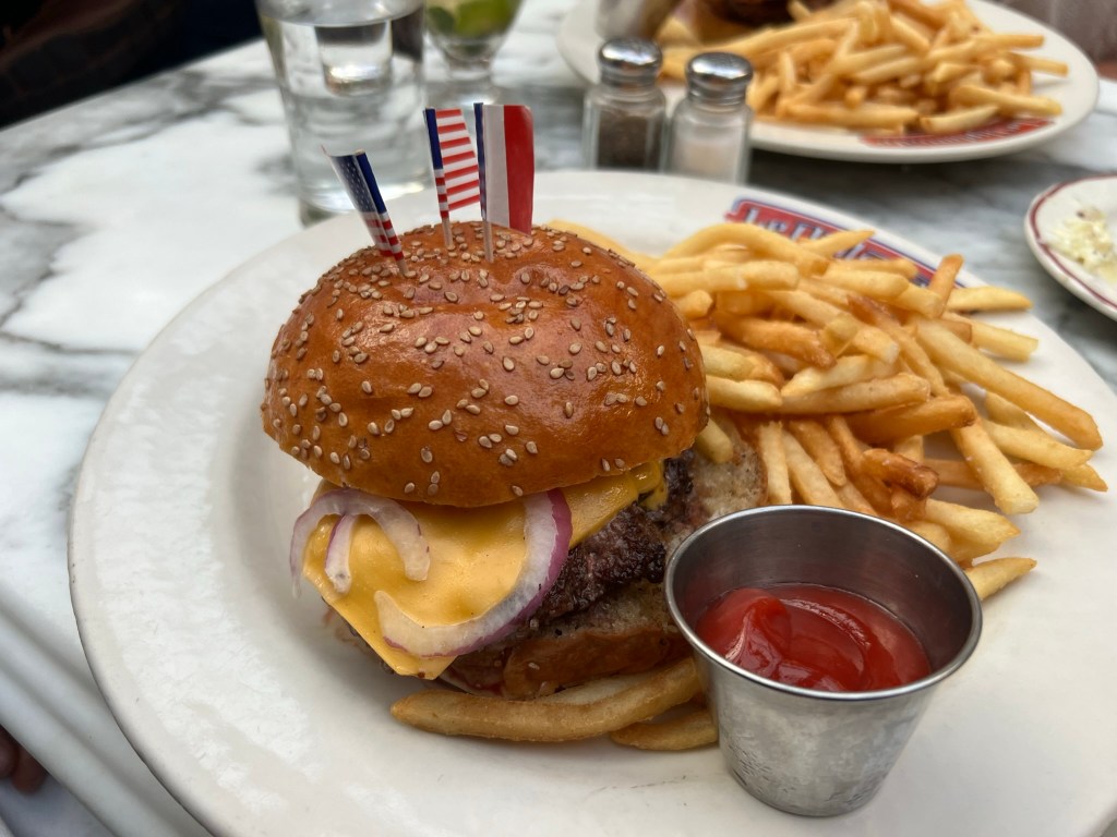 Le Diplomate – My younger daughter had eaten at this French restaurant with my brother last year and she wanted to bring her parents and her boyfriend here so we could try it too. It’s also a DC institution. Everyone really enjoyed their meals here. The whiskey cocktails that I tried were unique and well-made. We started with a charcuterie and cheese plate which was reasonably priced considering how huge it was. Two people went with the burger, our daughter had a warm shrimp salad and I had the French onion soup for my main course. We then enjoyed a couple of the desserts.