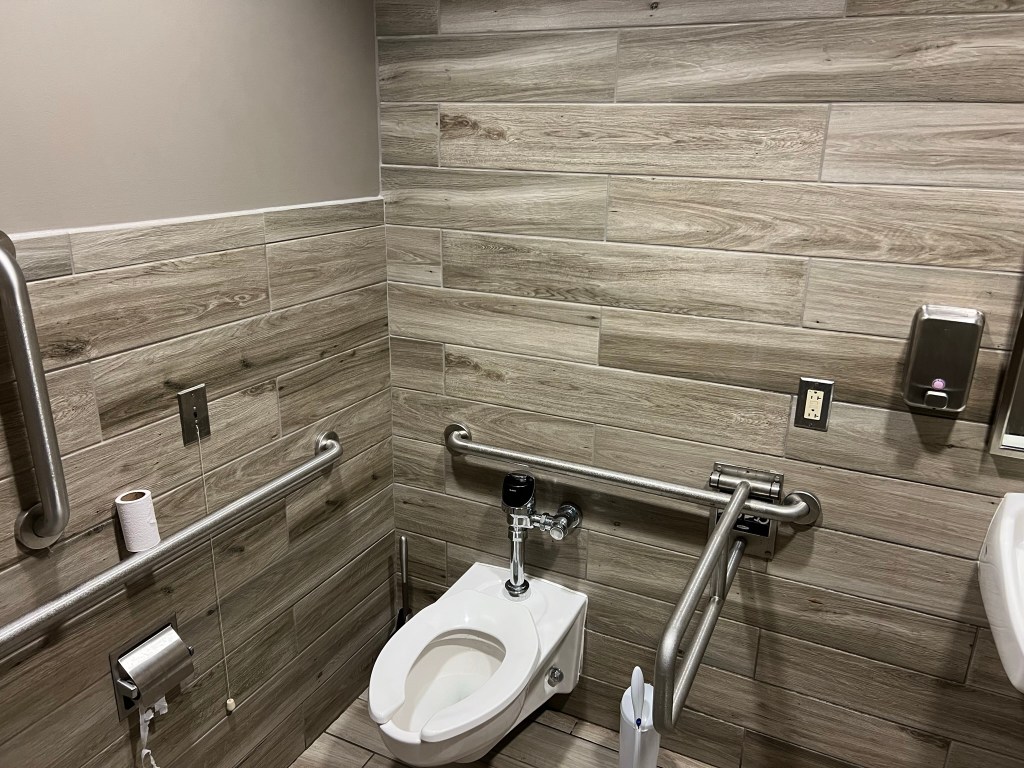 There are two bathrooms, but they are individual bathrooms and not gender specific, so I’m sure that grosses out most women who use the lounge.
