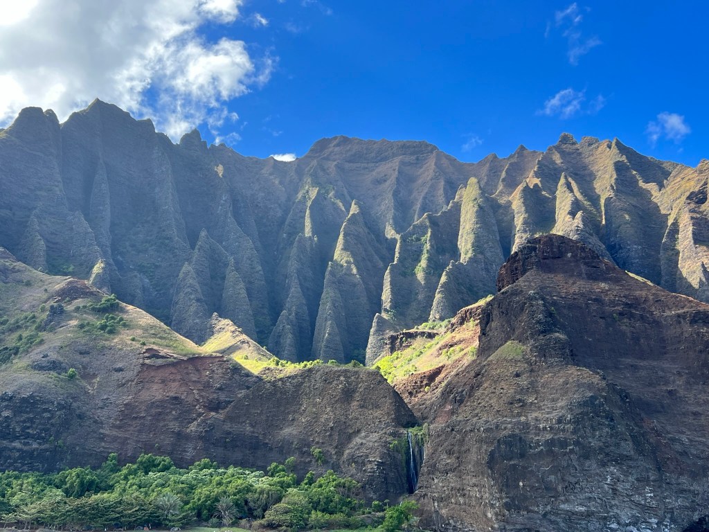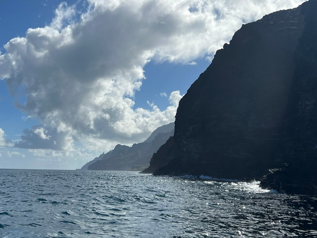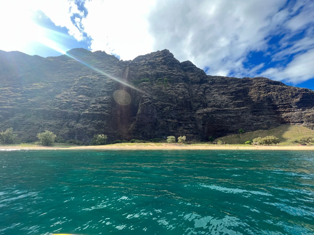 Eventually, we turned to the east and were alongside the Na’Pali Coast. We saw the famous Kalalau Beach where the 11-mile Kalalau Trail ends and some other amazing views.