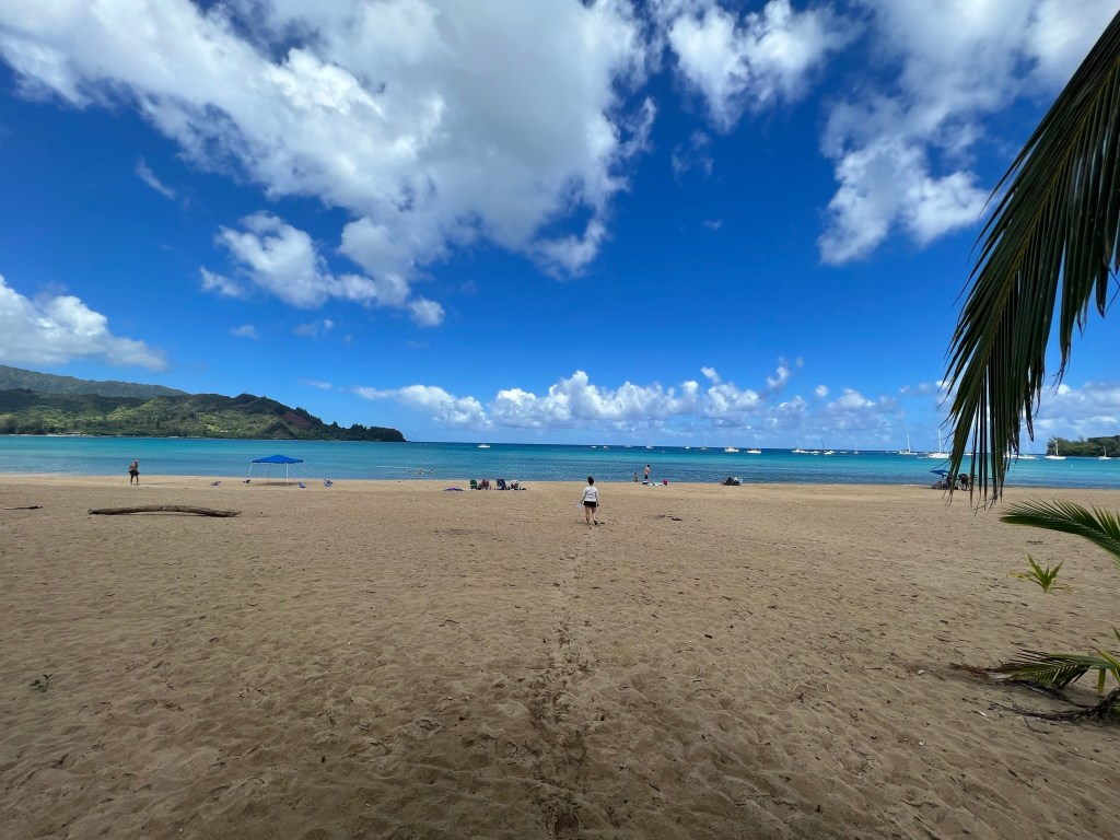 From there, we drove to Hanalei Bay and found parking on Wehe Road near an almost hidden pathway to the beach. We spent quite a bit of time there. It’s a beach famous for being in the movie South Pacific.