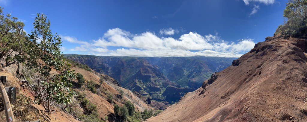 That last morning I decided to drive up to the top of Waimea Canyon and hike the Pihea Trail. I got about 90% through it before the mud and puddles got to be too much. The weather was beautiful, but it had clearly rained overnight. I did get some great pictures though.