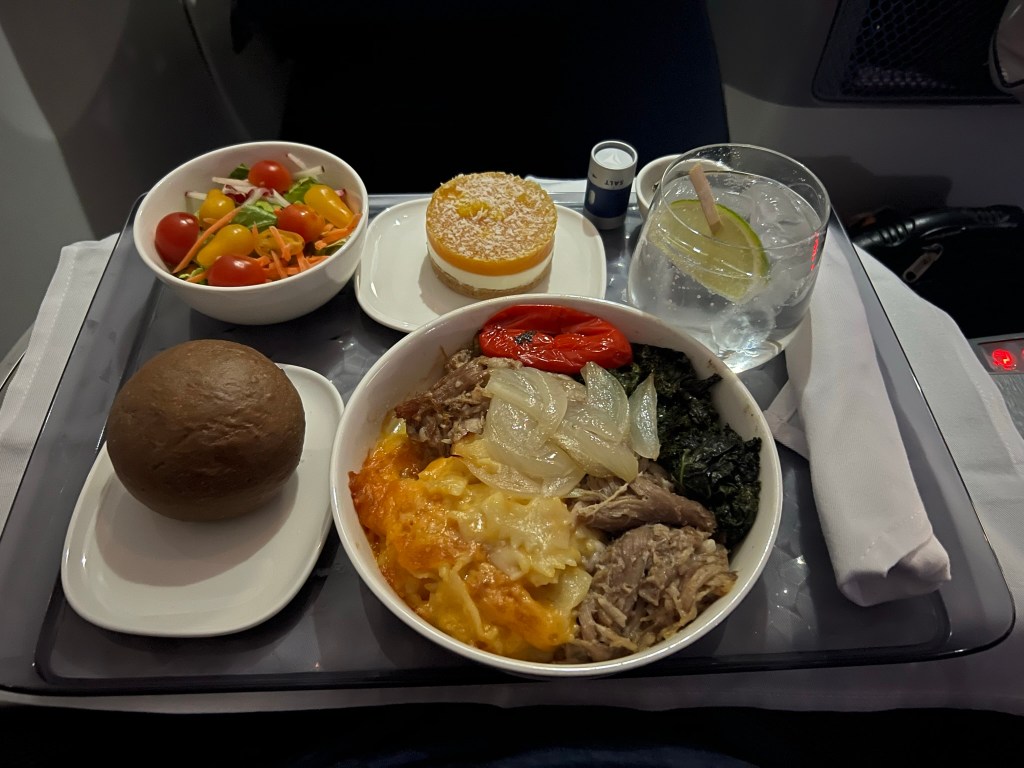 We took off on time and were promised a fairly smooth ride into Salt Lake City. I tried to sleep for an hour or so, but just couldn’t doze off. After a visit to the (clean) restroom, I asked for my dinner, more for review purposes as I wasn’t that hungry.