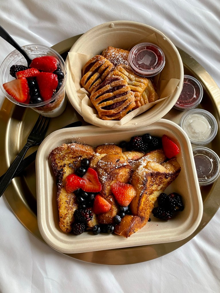 Breakfast was a bit weird. The hotel sent an email with the code for them to order their breakfast from a local restaurant called Cafe MishMosh. The menu looked pretty good. The hotel allows for up to $50 to be ordered until 11am and guests can have breakfast delivered to the room or in the seating area near the lobby. Tips are not included according to the email, which is not typical for most Globalist breakfast benefits at Hyatts.