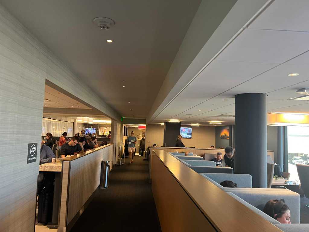 The lounge was packed the whole time I was there, but there were a few seats that opened up from time to time as people left and others took their place. It’s a small space, and the buffet is difficult to access as it’s in the back left corner of the lounge. Most of the seating is to the right.