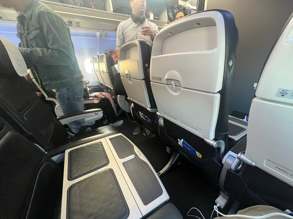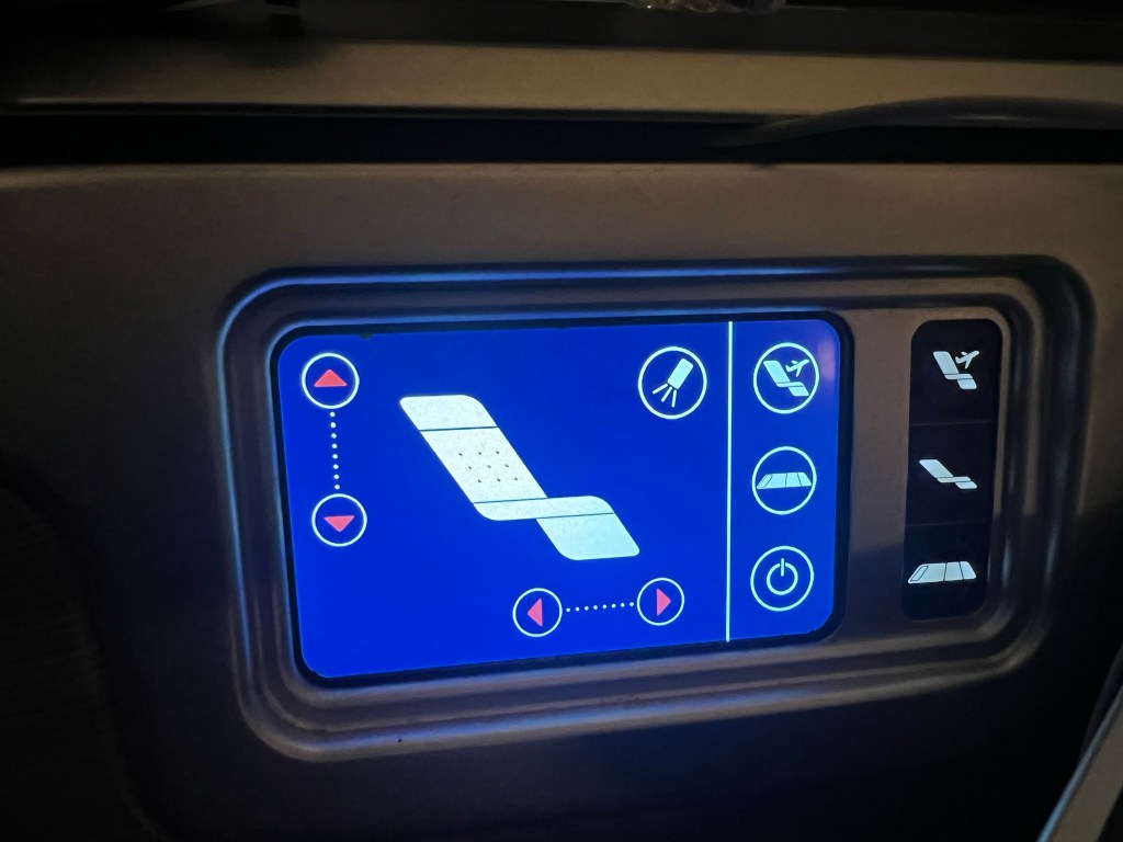 The seats certainly looked very nice and were well-designed. They made good use of the space. Sorry for the lighting in these pictures, but they had the mood lighting set to “dusk” mode on boarding.