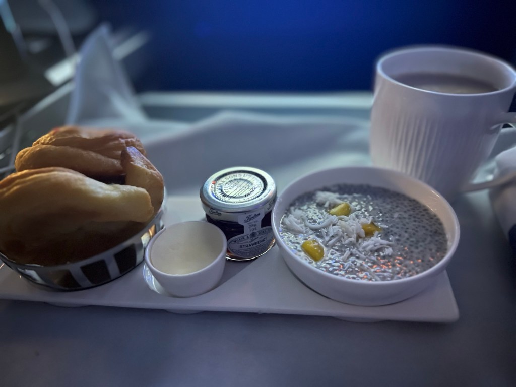 I decided to have a lighter breakfast as I knew we still had the lounge and another BA flight to go before we got to Dublin. I asked for just the chia pudding and croissants rather than one of the breakfast sandwich offerings. I also had a cup of hot tea with milk in the English style.