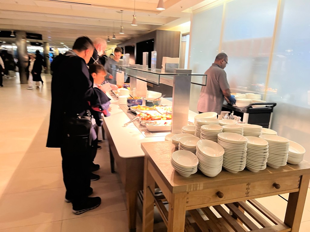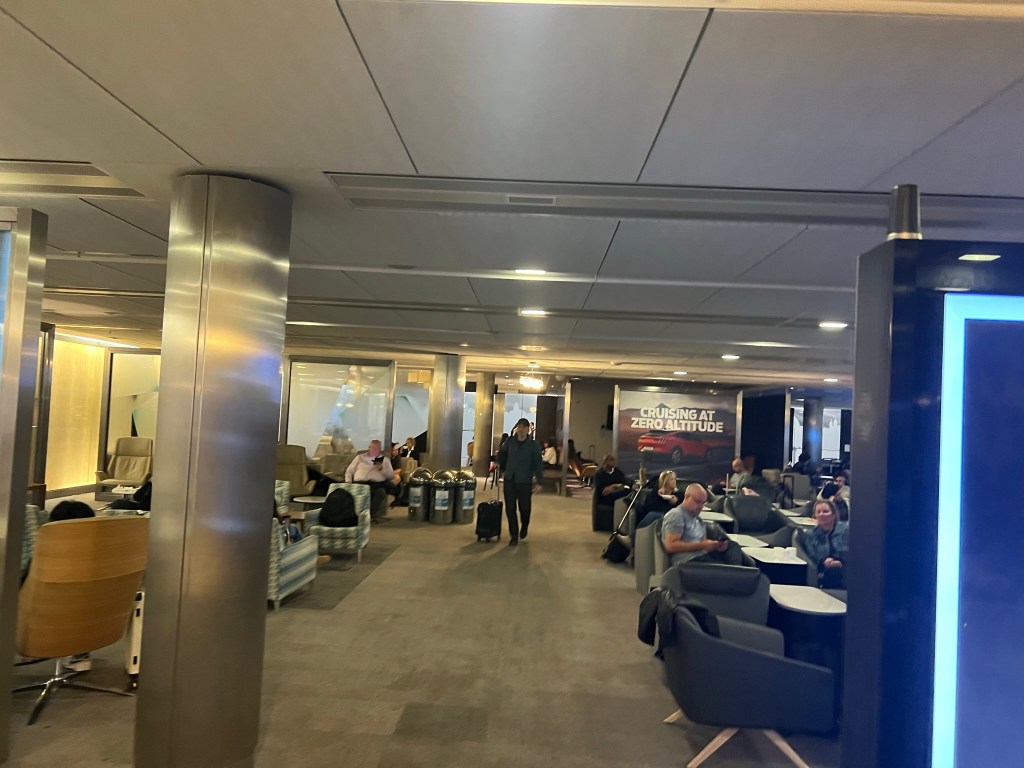 The lounge was large and fairly busy, but seats were plentiful. There was a full English breakfast available, espresso-based drinks in an automated machine, plus various fruits, yogurts, and pastries. We had about an hour in the lounge before we headed down to our flight. Unfortunately, it was Gate A1, the furthest possible gate from the South lounge. I was trying to decide if the North or South lounge was a better choice and definitely chose wrong. At least we got some steps in.